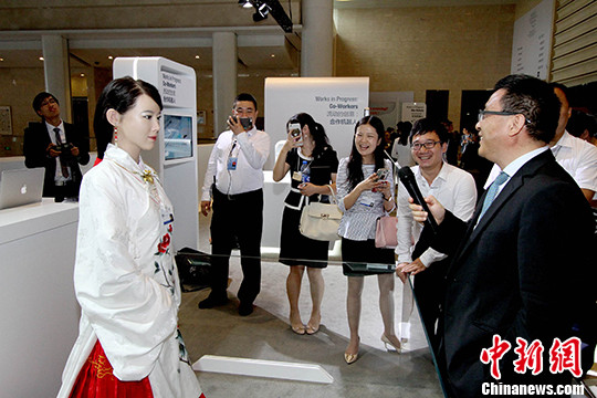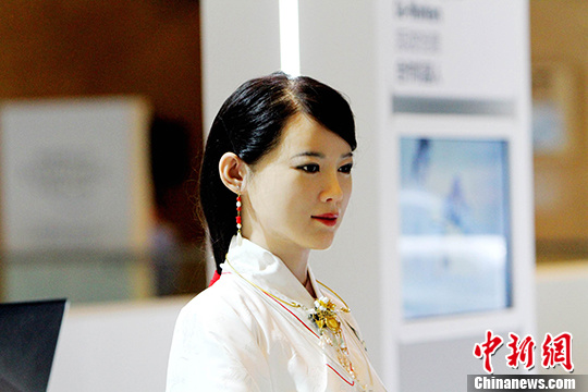 “佳佳”是一位高顏值機(jī)器人,由中國科學(xué)技術(shù)大學(xué)研發(fā),是中國首臺(tái)特有體驗(yàn)交互機(jī)器人。在2016天津夏季達(dá)沃斯論壇上,“佳佳”甫一亮相,令人驚嘆。她身著傳統(tǒng)服飾,一頭秀麗的黑發(fā)挽成頗有古典意味的發(fā)型,再加上手如柔荑,膚如凝脂,觀者無不被其美貌折服。