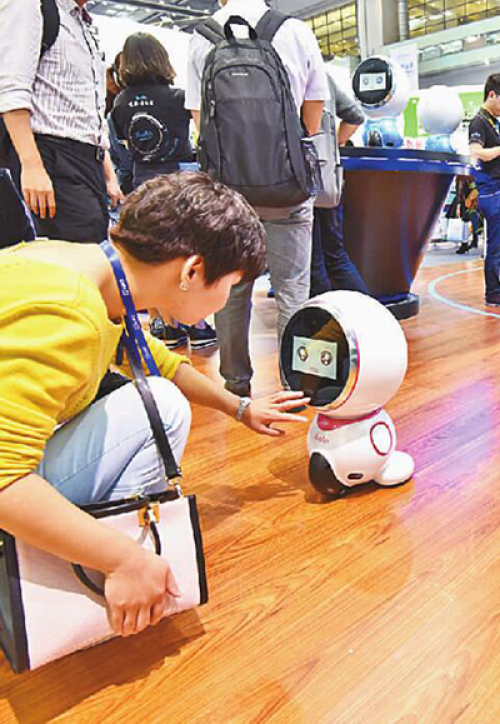 高交會上,觀眾與機(jī)器人互動。鄧飛攝/光明圖片