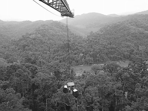 利用森林塔吊布設(shè)馬來氏網(wǎng)。