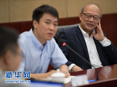 5月14日,在中科院物理研究所會(huì)議室舉行的發(fā)布會(huì)上,北京大學(xué)物理學(xué)院教授江穎(左)和中科院院士、北京大學(xué)講席教授王恩哥在回答記者提問(wèn)。新華社記者 金立旺 攝