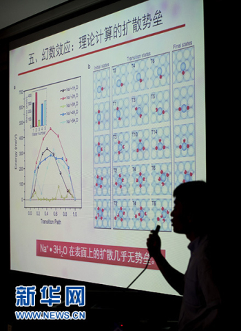 5月14日,在中科院物理研究所會(huì)議室舉行的發(fā)布會(huì)上,中科院院士、北京大學(xué)講席教授王恩哥在介紹研究成果。新華社記者 金立旺 攝
