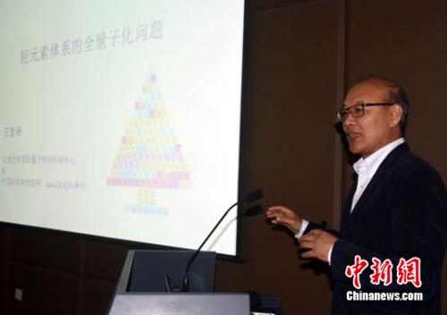 中國科學(xué)院院士、中國科學(xué)院大學(xué)卡維里研究所名譽(yù)所長、北京大學(xué)講席教授王恩哥介紹水合離子研究最新進(jìn)展。孫自法 攝