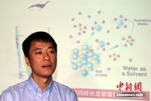 北京大學(xué)物理學(xué)院量子材料科學(xué)中心教授江穎就水合離子最新研究成果接受媒體采訪。孫自法 攝