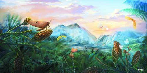 侏羅紀和白堊紀麗蛉的生態(tài)重建圖(楊定華繪圖)