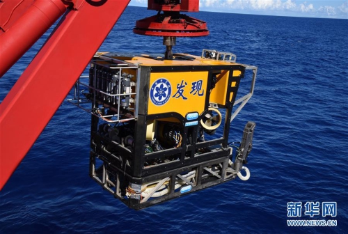 “發(fā)現(xiàn)”號(hào)遙控?zé)o人潛水器入水(5月27日攝)。新華社記者 張旭東 攝