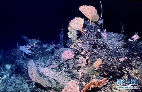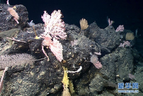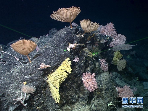 “發(fā)現(xiàn)”號遙控無人潛水器拍攝到的“海底花園”(5月28日攝)。新華社發(fā)