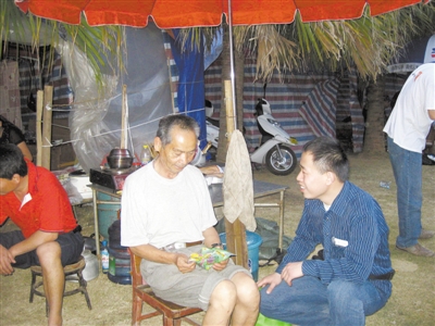 2011年3月,吳坎坎(右二)在云南盈江災區(qū)安撫受災群眾。