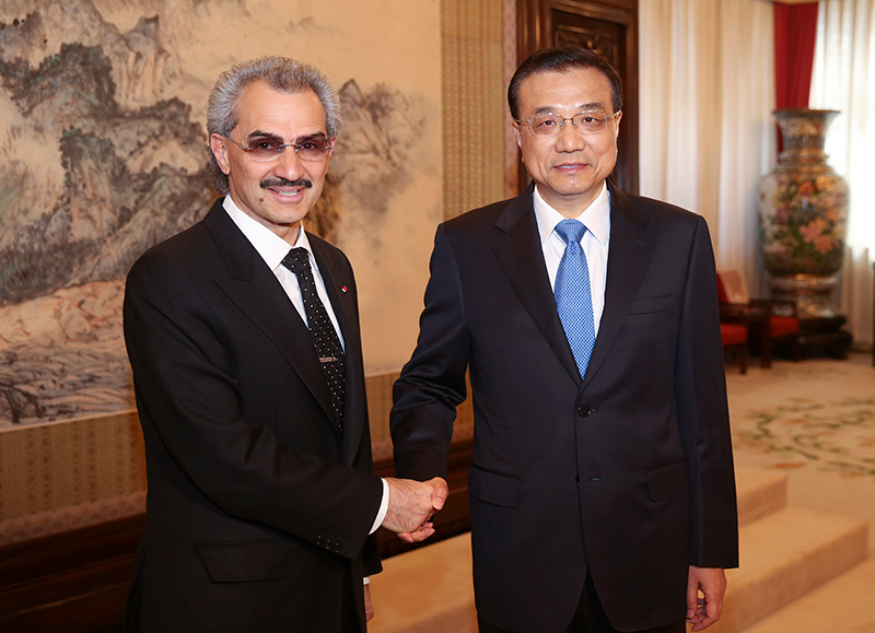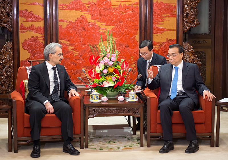 國務(wù)院總理李克強5月18日在中南海紫光閣會見沙特王國控股公司董事長瓦利德親王。