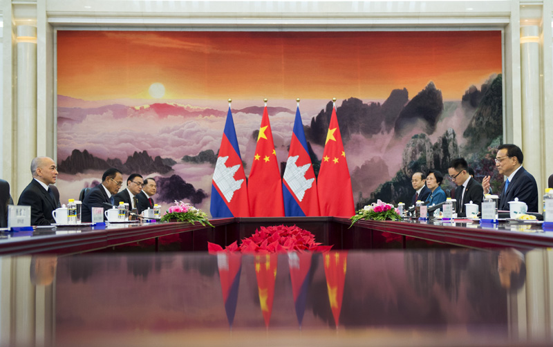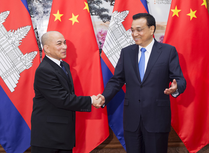 國(guó)務(wù)院總理李克強(qiáng)6月3日下午在人民大會(huì)堂會(huì)見來華進(jìn)行國(guó)事訪問的柬埔寨國(guó)王西哈莫尼。