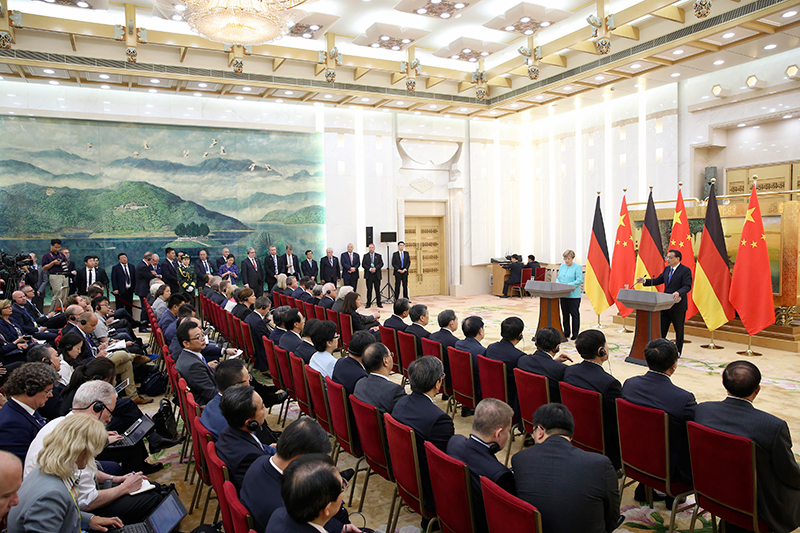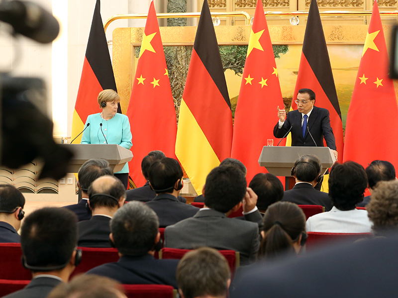 國務(wù)院總理李克強(qiáng)6月13日中午在人民大會(huì)堂與德國總理默克爾共同會(huì)見記者并回答提問。