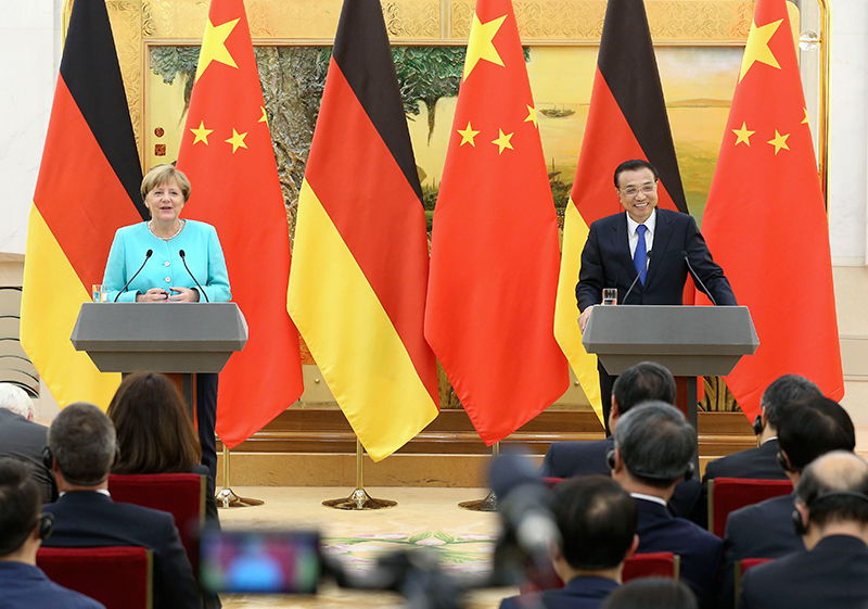 李克強(qiáng)介紹了兩國總理會(huì)談及第四輪中德政府磋商成果,他表示,中德政府磋商已成為推動(dòng)兩國關(guān)系發(fā)展的“超級發(fā)動(dòng)機(jī)”。雙方一致同意繼續(xù)本著“共塑創(chuàng)新”的精神,鞏固政治互信,深化貿(mào)易投資、金融等領(lǐng)域合作,積極開展第三方市場、智能制造、創(chuàng)業(yè)創(chuàng)新等合作,打造中德合作新引擎。雙方將以誠相待,相向而行,不斷凝聚共識,擴(kuò)大共同利益,使中德全方位戰(zhàn)略伙伴關(guān)系邁上新臺階,也為世界經(jīng)濟(jì)復(fù)蘇和兩國務(wù)實(shí)合作創(chuàng)造良好環(huán)境。