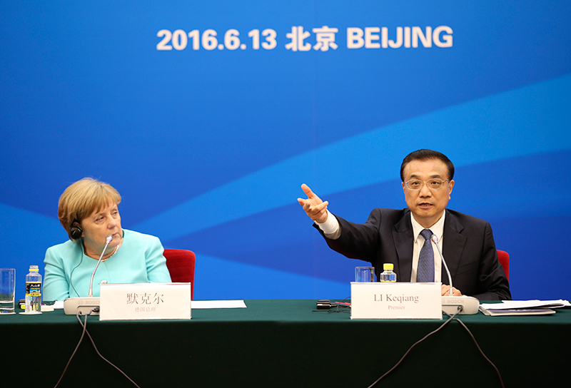 國(guó)務(wù)院總理李克強(qiáng)6月13日下午與德國(guó)總理默克爾在人民大會(huì)堂共同出席中德經(jīng)濟(jì)顧問(wèn)委員會(huì)座談會(huì),并同與會(huì)的中德兩國(guó)經(jīng)濟(jì)界代表座談交流。