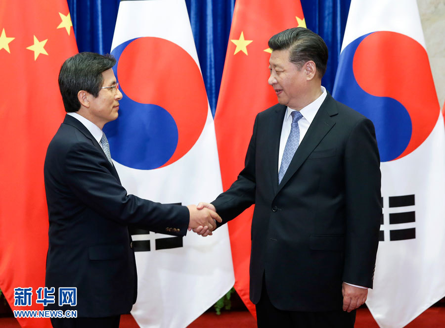 黃教安轉(zhuǎn)達(dá)了樸槿惠對(duì)習(xí)近平的親切問候。黃教安表示,在樸槿惠總統(tǒng)和習(xí)近平主席的親自指引下,近年來韓中關(guān)系迅猛發(fā)展。韓方愿繼續(xù)保持兩國高層密切往來;以韓中自貿(mào)協(xié)定框架為契機(jī)建立更加緊密的經(jīng)濟(jì)聯(lián)系;對(duì)接韓方“歐亞倡議”和“一帶一路”建設(shè),加強(qiáng)在亞洲基礎(chǔ)設(shè)施投資銀行內(nèi)合作;促進(jìn)青年等人文交流。韓方愿同中方共同努力,使雙方各領(lǐng)域合作成果充分符合當(dāng)前兩國關(guān)系發(fā)展的水平。韓方希望就朝鮮半島核問題等同中方保持密切溝通。