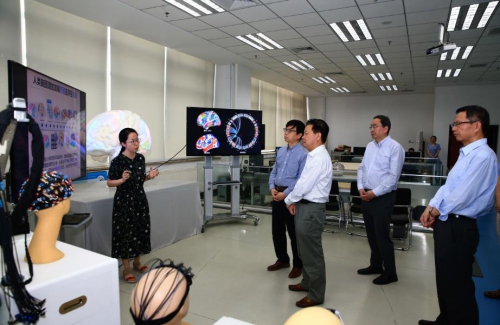 李樹深先后參觀了高通量大腦微觀重建平臺、腦圖譜、類腦認(rèn)知功能模擬與智能機(jī)器人云腦、大數(shù)據(jù)智能分析及生物識別與視頻監(jiān)控等項目的重要成果展示,并與科研一線人員進(jìn)行親切交流。