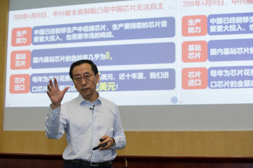 在報(bào)告中,張杰運(yùn)用馬克思主義的思想方法,以物理學(xué)家特有的理論思維和戰(zhàn)略高度,立足全球視野,佐以豐富史料、詳實(shí)數(shù)據(jù)和典型案例,展示了5000年來中華民族取得的輝煌成就;圍繞中華民族幾千年來形成的文化基因、1840年以來爭取獨(dú)立的抗?fàn)幣c探索、1949年新中國成立后的持續(xù)探索、1978年改革開放以來的偉大實(shí)踐以及中國特色社會(huì)主義進(jìn)入新時(shí)代的歷史性成就、中科院使命擔(dān)當(dāng)?shù)冗M(jìn)行了解讀。他從中西文化的發(fā)展特點(diǎn)對比論證了選擇中國特色社會(huì)主義道路的歷史必然性,解讀了中華文明長盛不衰、創(chuàng)新圖強(qiáng)的精神密碼,系統(tǒng)論述了中國特色社會(huì)主義進(jìn)入新時(shí)代的豐富內(nèi)涵,提出了新時(shí)代科技工作者的責(zé)任擔(dān)當(dāng)和歷史使命,并對未來科技發(fā)展大趨勢下中科院的歷史方位進(jìn)行了深入闡釋。張杰還針對學(xué)員提出的“馬克思主義中國化”“強(qiáng)化國家戰(zhàn)略科技力量”等問題進(jìn)行了解答。