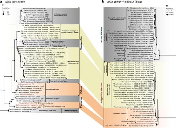 土壤和海洋古菌AOA的物種系統(tǒng)進化關(guān)系及其與ATPase基因的關(guān)聯(lián)分析