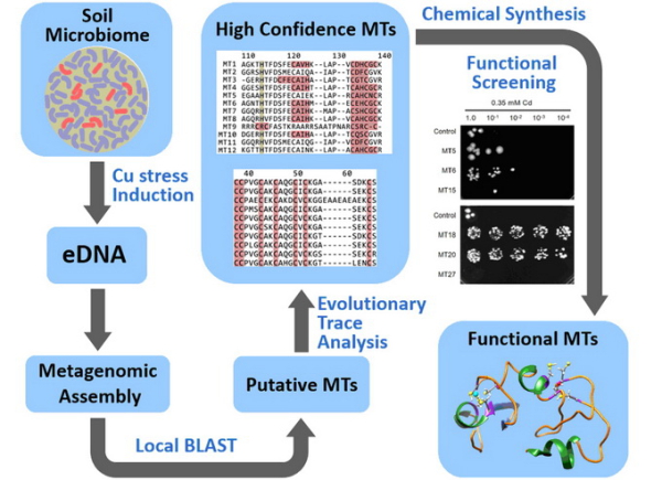 該研究以Metagenomics-guided discovery of potential bacterial metallothionein genes conferring Cu/Cd resistance from soil microbiome為題發(fā)表在Applied and Environmental Microbiology上。