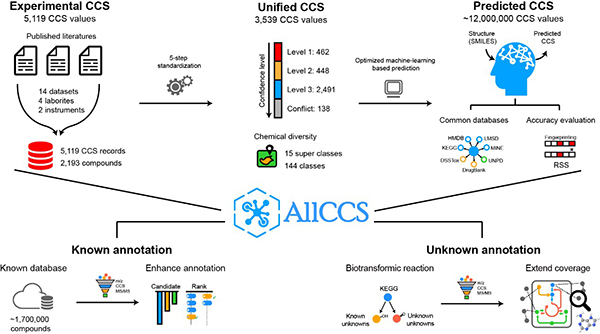 相關成果以Ion Mobility Collision Cross-Section Atlas for Known and Unknown Metabolite Annotation in Untargeted Metabolomics為題,發(fā)表在《自然-通訊》上,博士研究生周智偉為第一作者。AllCCS平臺已免費向學術用戶開放。研究得到國家重點研發(fā)專項、國家自然科學基金委、中科院、上海市科委等資助。