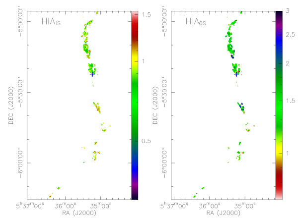 中國科學(xué)院新疆天文臺恒星形成與演化團(tuán)組科研人員通過模擬研究發(fā)現(xiàn),之前使用了40多年的峰值強(qiáng)度定義HIA的方法存在缺陷。因此,研究人員首次提出HIA的積分強(qiáng)度定義方法,并證明該方法比峰值強(qiáng)度方法更精確?;谛路椒?,研究人員利用美國Green Bank Telescope(GBT)射電望遠(yuǎn)鏡對獵戶座巨分子云的NH3(J,K)=(1,1)觀測數(shù)據(jù)開展系統(tǒng)性的HIA研究。研究發(fā)現(xiàn),NH3(J,K)=(1,1)的HIA現(xiàn)象在獵戶座分子云的不同區(qū)域分布沒有明顯差異,不會受到分子云密度、溫度等條件的顯著影響。統(tǒng)計(jì)結(jié)果表明,NH3(J,K)=(1,1)的HIA現(xiàn)象更可能是精細(xì)結(jié)構(gòu)非熱布局導(dǎo)致。此外,研究人員還開展NH3(J,K)=(1,1)的HIA強(qiáng)度和分子云物理參數(shù)的相關(guān)性研究,發(fā)現(xiàn)(J,K)=(1,1)的精細(xì)結(jié)構(gòu)強(qiáng)度異常僅存在弱的相關(guān)性等結(jié)果。