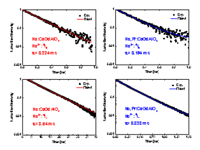 圖2.Pr3+共摻前后Ho3+三微米激光上、下能級(jí)壽命對(duì)比