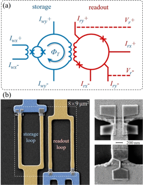 高速超導(dǎo)存儲(chǔ)器是發(fā)展超導(dǎo)高性能計(jì)算技術(shù)的核心器件之一。長期以來,由于存儲(chǔ)原理、集成度等原因,超導(dǎo)存儲(chǔ)器經(jīng)歷了漫長而遲緩的發(fā)展進(jìn)程。在當(dāng)前眾多低溫超導(dǎo)存儲(chǔ)方案中,通過磁通量子存儲(chǔ)數(shù)據(jù)是唯一有可能實(shí)現(xiàn)皮秒量級(jí)的高速讀寫速度,但是由于超導(dǎo)電路在存儲(chǔ)磁通量子時(shí)受到電感條件限制,導(dǎo)致存儲(chǔ)單元物理尺寸(目前60×60 μm2)難以縮小與集成,無法達(dá)到實(shí)際應(yīng)用需求。