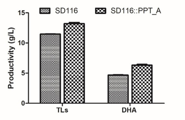 同時,該研究組通過生物信息學方法,首次鑒定到特異性作用于裂殖壺菌PUFA合成途徑的磷酸泛酰巰基乙胺基酰基轉移酶(Phosphopantetheinyl transferase,PPTase),并通過生理生化實驗確定該PPTase的功能特性,將其在裂殖壺菌中進行過表達,使裂殖壺菌的DHA和PUFA產量分別提高36%和18%。相關成果發(fā)表在Biotechnology for Biofuels上。