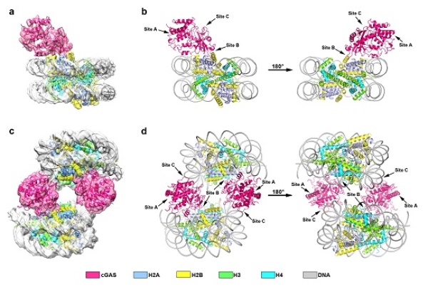 人源cGAS與核小體復(fù)合物的冷凍電鏡結(jié)構(gòu)示意圖