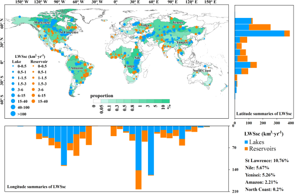 全球大中型湖庫的季節(jié)性水量變化遙感估算結(jié)果