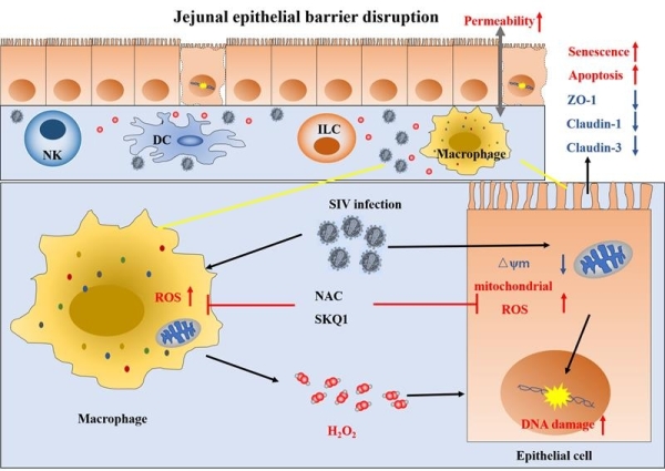 該研究成果以Jejunal Epithelial Barrier Disruption Triggered by Reactive Oxygen Species in Early SIV Infected Rhesus Macaques為題,在線發(fā)表在Free Radical Biology and Medicine上。研究工作得到國家自然科學(xué)基金等的資助。