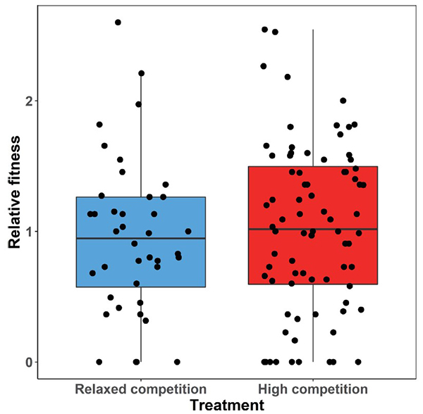 圖1.觀察到的來自兩種處理組的雌性的相對適合度