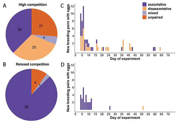 圖2.觀察到的來自寬松競爭組和激烈競爭組的雌性的配對模式對比