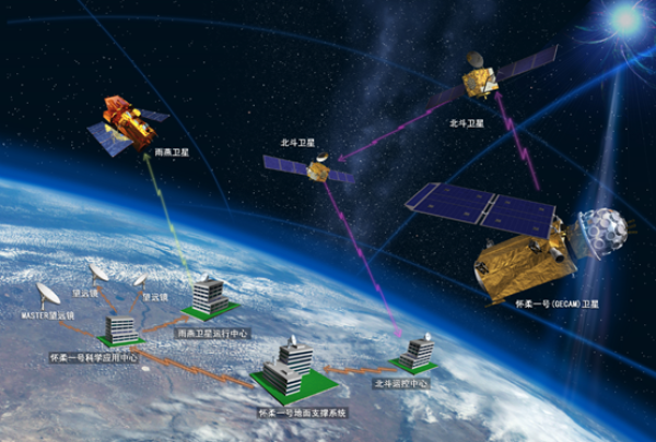 “懷柔一號”衛(wèi)星是我國首顆具有快速下傳及發(fā)布天文警報的衛(wèi)星。在軌準實時發(fā)現(xiàn)和定位高能爆發(fā)天體,及時向天文界發(fā)布觀測警報,引導其他望遠鏡聯(lián)合觀測是“懷柔一號”衛(wèi)星的重要功能。2021年6月,“懷柔一號”衛(wèi)星科學應(yīng)用中心開始向國內(nèi)外合作團隊發(fā)布準實時的觀測警報;2021年10月底,雨燕衛(wèi)星GUANO系統(tǒng)開始利用“懷柔一號”衛(wèi)星的觸發(fā)警報搜索未觸發(fā)的伽馬暴。該成果驗證了“懷柔一號”衛(wèi)星在伽馬射線爆發(fā)天體監(jiān)測、準實時觀測預(yù)警以及引導其他望遠鏡后隨觀測等方面的優(yōu)異性能,并為后續(xù)開展引力波電磁對應(yīng)體、快速射電暴高能輻射、伽馬暴和磁星爆發(fā)的監(jiān)測和多波段多信使聯(lián)合觀測奠定了良好基礎(chǔ)。