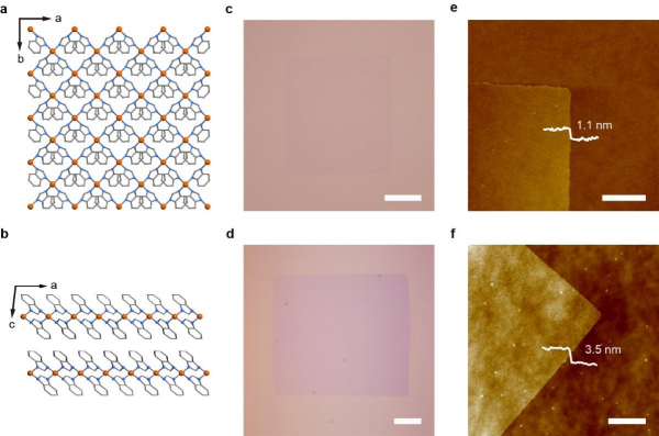 二維金屬有機骨架(MOF)具有超高的比表面積和更多暴露活性位點,在分子傳感、氣體分離、催化和超導體等領域展現出應用潛力。制備具有原子厚度的高質量、大尺寸MOF晶體,特別是單層單晶,是MOF性質研究和應用的關鍵。然而,由于MOF塊體晶體中片層本征的脆性和層間強的相互作用,二維MOF的制備存在結晶性差、難以單層制備、尺寸小等問題。同時,當前報道的可控制備高質量、大尺寸單層二維材料的化學氣相沉積(CVD)方法,僅實現了MOF薄膜的生長,而大尺寸原子級厚的MOF單晶特別是單層單晶未被實現。與無機材料和石墨烯的CVD生長相比,MOF-CVD的生長溫度一般低于300oC,加上前驅體有機配體分子的質量大、體積大、與基底相互作用強,致使產生厚的多晶薄膜。因此,發(fā)展CVD方法制備大尺寸原子級薄的MOF單晶,對于MOF的性質研究和實際應用具有重要意義。
