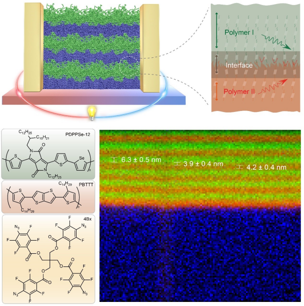 中國(guó)科學(xué)院化學(xué)研究所朱道本、狄重安研究團(tuán)隊(duì)與張德清課題組,聯(lián)合北京航空航天大學(xué)趙立東課題組以及國(guó)內(nèi)外的研究團(tuán)隊(duì),提出并構(gòu)建了聚合物多周期異質(zhì)結(jié)(PMHJ)熱電材料。該類型分子組裝體具有周期有序的納米結(jié)構(gòu),其中兩種聚合物厚度均小于10納米,相鄰界面約為2個(gè)分子層且具有體相異質(zhì)特征。優(yōu)化后的PMHJ薄膜可以保持優(yōu)異的電荷輸運(yùn)特性,并大幅抑制聲子/類聲子傳播,從而實(shí)現(xiàn)了聚合物熱電性能的大幅提升,為高性能塑料基熱電材料的研究和應(yīng)用提供了全新路徑。相關(guān)研究成果發(fā)表在《自然》(Nature)上。