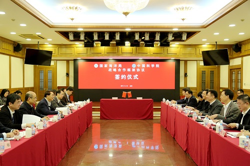 11月10日,中國科學(xué)院與國家海洋局戰(zhàn)略合作協(xié)議簽約儀式在京舉行。中科院院長、黨組書記白春禮和國家海洋局局長、黨組書記王宏出席儀式并講話,中科院副院長、黨組成員相里斌和國家海洋局副局長、黨組成員林山青代表雙方簽署戰(zhàn)略合作框架協(xié)議。