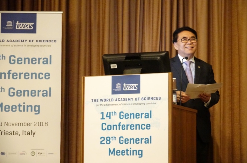 11月27日,發(fā)展中國家科學(xué)院(TWAS)第28屆院士大會在意大利的里亞斯特開幕。TWAS院長、中國科學(xué)院院長白春禮主持大會開幕式,意大利外交部代表法布瑞其奧·尼克拉提、聯(lián)合國教科文組織助理總干事史鳳雅、國際理論物理中心主任費爾南多·克韋多等出席并致賀辭。來自全球60多個國家和地區(qū)的300多名科學(xué)家,多個國家的科技界領(lǐng)導(dǎo)、國際組織代表共聚一堂,共議TWAS未來發(fā)展。