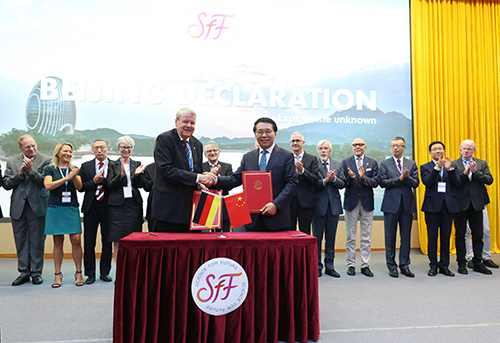 9月9日,由中國科學(xué)院與德國國立科學(xué)院(Leopoldina)聯(lián)合舉辦的第一屆雙邊研討會在中國科學(xué)院大學(xué)雁棲湖校區(qū)開幕。中科院院長白春禮、德國國立科學(xué)院院長Jorg Hacker出席開幕式并致辭。諾貝爾獎得主楊振寧和Klaus von Klitzing圍繞“科學(xué)與未來”主題分別作了主旨報告。開幕式上,白春禮和Jorg Hacker代表兩國科學(xué)院共同簽署并發(fā)布了《北京宣言》,共同倡議加強(qiáng)基礎(chǔ)研究并更加重視青年人才培養(yǎng)。
