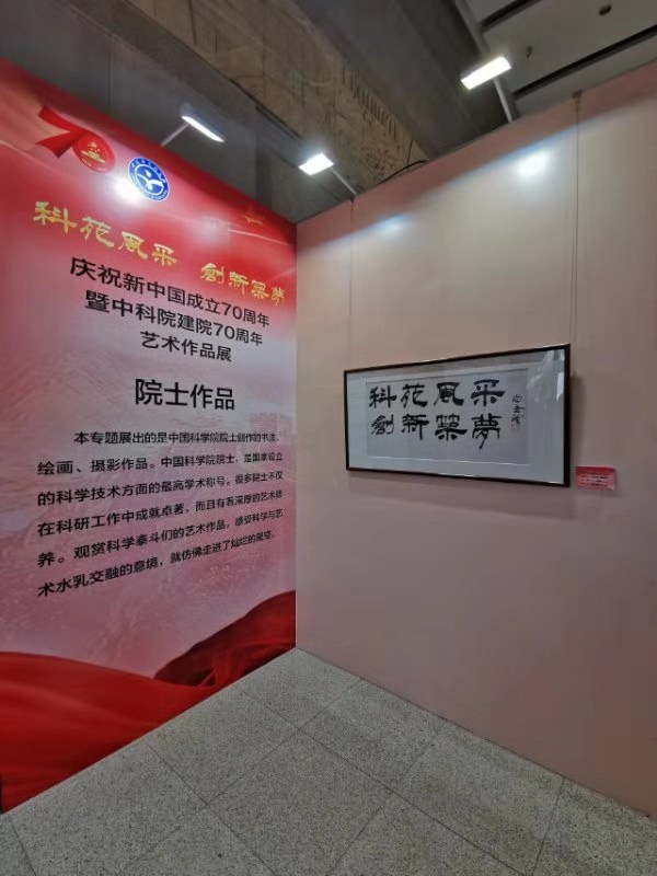 為慶祝新中國成立70周年、中國科學(xué)院建院70周年,11月11日,由中國科學(xué)院文學(xué)藝術(shù)界聯(lián)合會主辦、策劃的“科苑風(fēng)采 創(chuàng)新筑夢”藝術(shù)作品展在中科院創(chuàng)新文化廣場開幕。本次展覽共展出了包括中科院院士書法、繪畫、攝影作品在內(nèi)的近200幅作品,以及設(shè)計和收藏的郵品,并特邀了知名藝術(shù)家助展。