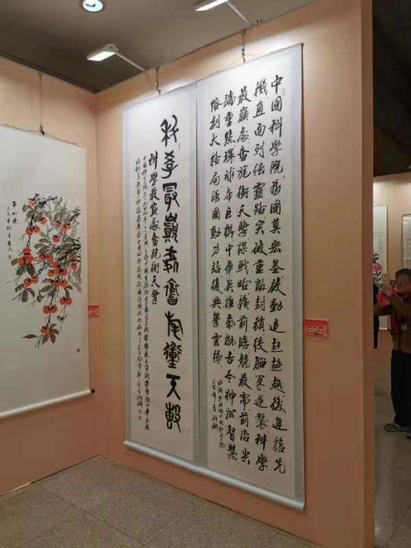 中科院院長、黨組書記、中科院院士白春禮,中科院院士簡水生、魏江春、陳洪淵、方成、張國偉、常文瑞、劉嘉麒、嚴(yán)加安、吳碩賢、周衛(wèi)健、趙進(jìn)東、種康、張明杰等為本次展覽提供了自己創(chuàng)作的書畫等展品。