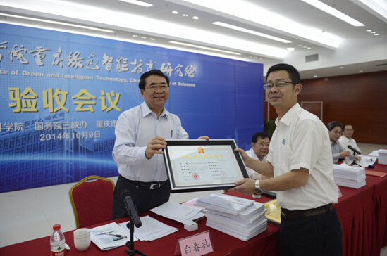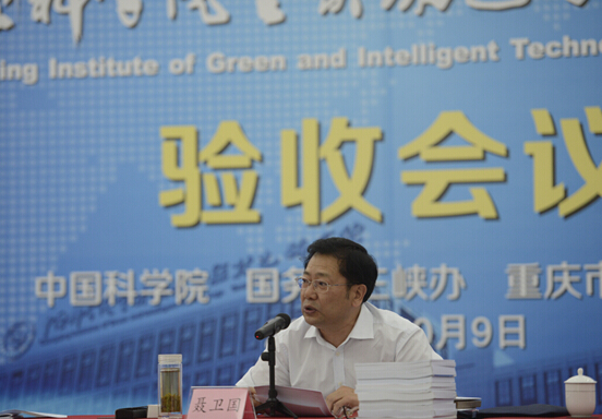 10月9日下午,中國科學院重慶綠色智能技術研究院(簡稱“重慶研究院”)順利通過由中國科學院、國務院三峽辦、重慶市人民政府籌建三方組成的驗收委員會的驗收,標志著重慶研究院經過三年多時間的籌建,正式建成。中科院院長白春禮、國務院三峽辦主任聶衛(wèi)國、重慶市市長黃奇帆、國務院三峽辦副主任陳飛、重慶市副市長吳剛出席驗收會。驗收會由中科院副院長施爾畏主持。