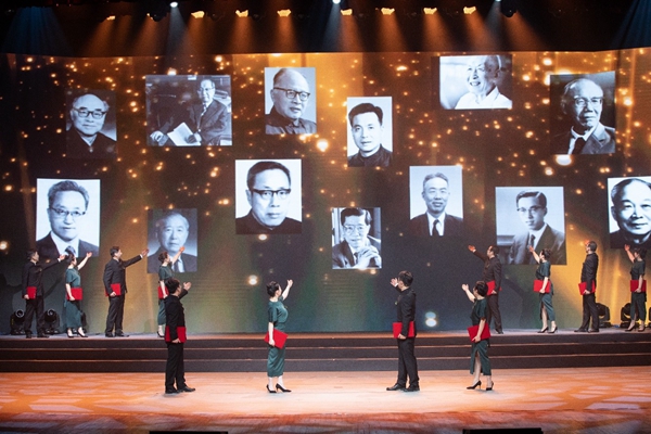 第一篇章“報(bào)國志”以短視頻《與祖國同行》開篇,將人們的記憶帶回到中科院建院初期,回顧了中科院與祖國共命運(yùn)、始終引領(lǐng)國家科技事業(yè)發(fā)展的光輝歷程。合唱《國家》《祖國不會(huì)忘記》用歌聲唱出對祖國的深情眷戀,唱出所有為祖國默默奉獻(xiàn)的科技工作者的心聲;講述《挺起共和國的脊梁》、詩朗誦《在科學(xué)人墓前的致敬》生動(dòng)詮釋了一代代中科院人科技報(bào)國、創(chuàng)新為民的科學(xué)精神和高尚情懷;在情景劇《等待》中,“兩彈一星”元?jiǎng)奏嚰谙纫陨碓S國,夫人許鹿希默默等待一生的故事,感動(dòng)了在場每一個(gè)人。