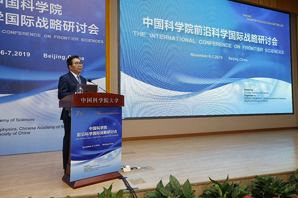 為慶祝新中國(guó)成立70周年和中國(guó)科學(xué)院建院70周年,11月7日,中國(guó)科學(xué)院前沿科學(xué)國(guó)際戰(zhàn)略研討會(huì)(International Conference on Frontier Sciences of Chinese Academy of Sciences)在北京懷柔中國(guó)科學(xué)院大學(xué)雁棲湖校區(qū)召開(kāi)。中科院院長(zhǎng)、黨組書(shū)記白春禮出席開(kāi)幕式并致辭。