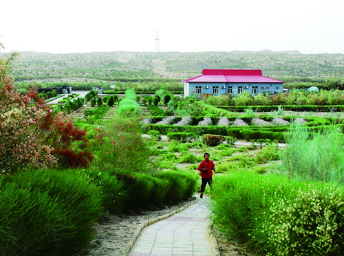 位于塔克拉瑪干沙漠腹地的塔中沙漠植物園引種了近300種防沙治沙植物(2012年6月25日攝)