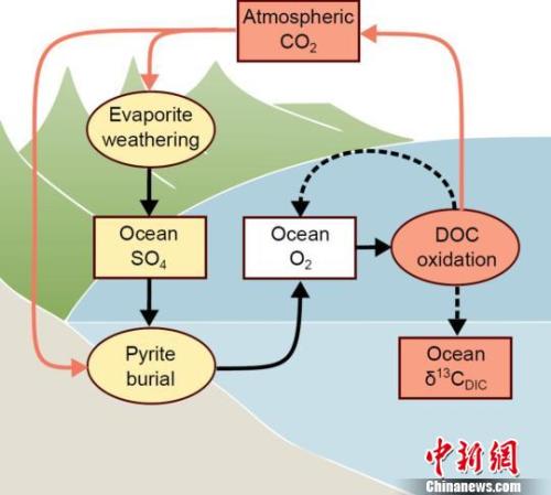 蒸發(fā)巖風化與海洋有機碳庫氧化的正反饋模型圖。南古所供圖