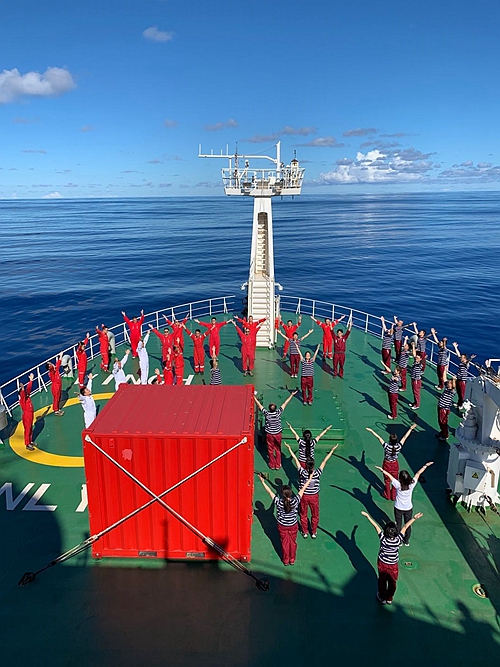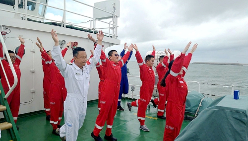此外,正在海上執(zhí)行科考任務(wù)的“科學(xué)”號(hào)、“科學(xué)三號(hào)”、“創(chuàng)新二號(hào)”三條科考船組織全體船隊(duì)員同步進(jìn)行了海上廣播操比賽。